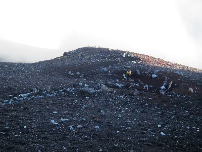Our return route was via the Subashiri trail, which is famous for very loose sandy slopes that some people find convenient for sliding down almost like skiing, supposedly making it a very fast return route. For me this was the hardest part of the trip, already lacking the muscle strength to have the kind of control to master sliding. I ended up walking most of it, with the effect of hardly being able to walk down any stairs when I got home. I recovered after three days.
